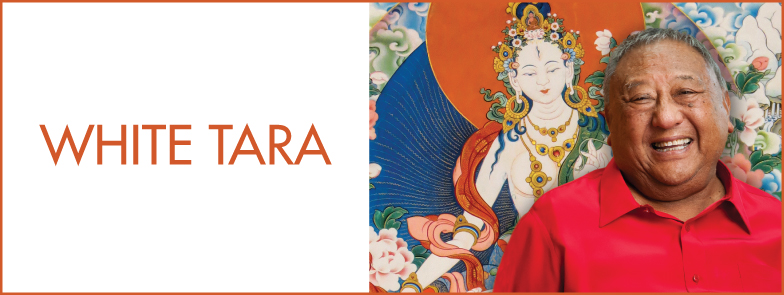 WHITE TARA is a core Jewel Heart practice. Gelek Rimpoche brings this powerful and unique lineage to us, rich with practices and visualization meditations to overcome physical, mental and emotional suffering. White Tara is particularly associated with healing and long life.